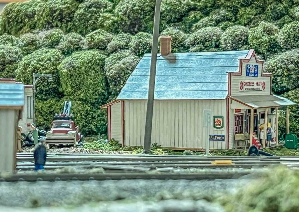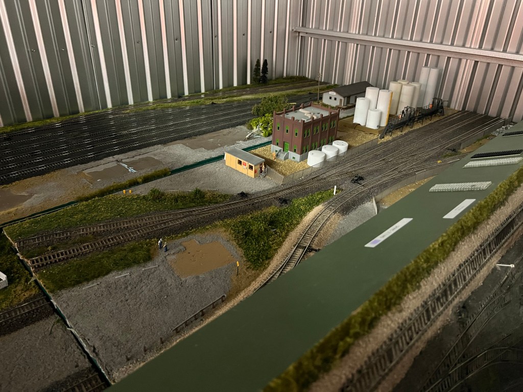 I’ve decided once a week I plan to post a different view of my old layout, now disassembled in pieces in our storage unit. I do plan to hopefully use one of my modules shown below to set up in my den/office to have a small switching layout and a display place for finished models.