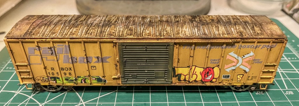 I’ll be at the upcoming Spring Creek Model Train show the July 8th and 9th at the Thayer County Event Center in Deshler, Nebraska. I won’t be there as a vendor, but will have one of my weathered cars there for the store to display permanently plus plenty of business cards for those interested. It’ll be interesting in that my model represented was purchased from Spring Creek, my go-to shop for all model railroad supplies. Again, I highly recommend them. The model I will have there is shown below. The show is Spring Creek’s bi-annual train show, and the hours are Saturday: 9-5 and Sunday 10-4. We’ll see you there…..!