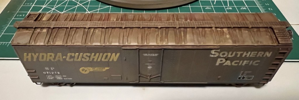 Below are s few photos of this Walther’s car which is now finished. Completed the trucks and wheels yesterday and installed the ACI plates this morning. Car was done with acrylics, powders, and wash of rust texture. This may go up for sale on my eBay store, but undecided as yet: