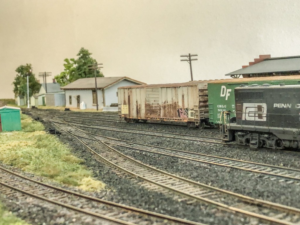 Here we go with this week’s layout photo: a view of Dickinson yard on a hazy, smog filled morning in the Kanawha Valley