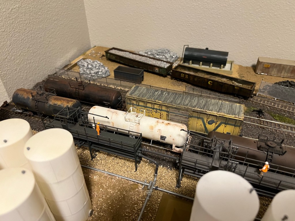 What’s up next will be to weather up the remaining tanks in Allied Chemical, dirty up the scrapyard, weather up the dumpsters, and plant more weeds.