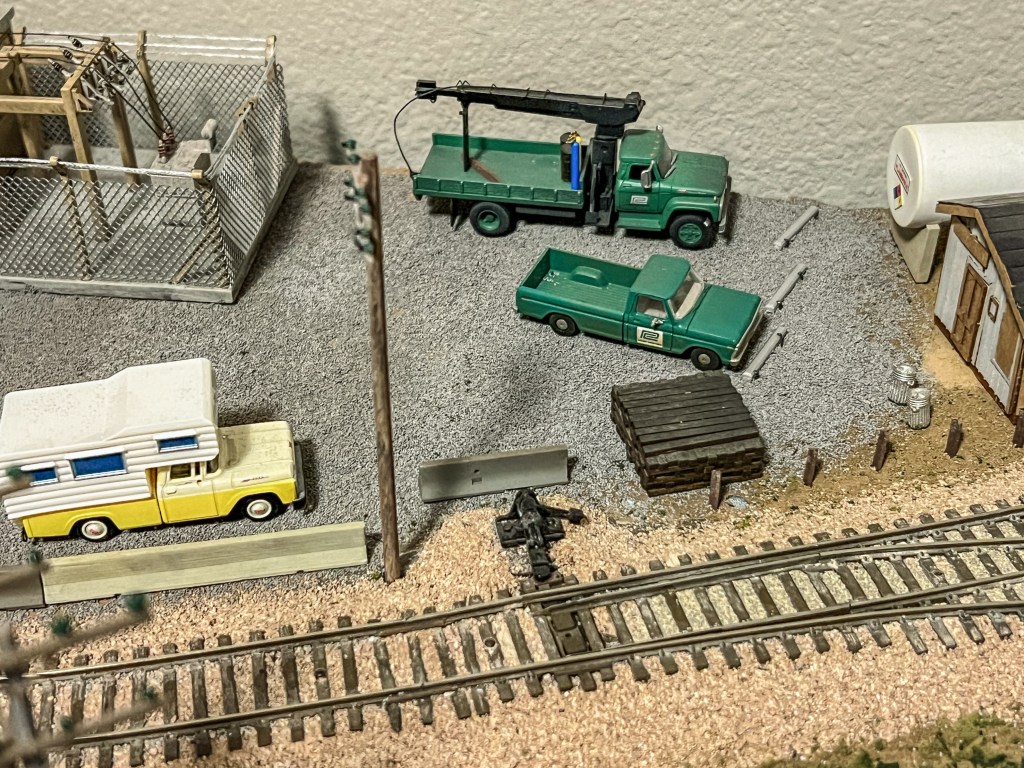 Details definitely make a layout. Details set the tone and era for a layout. Details can create separate little scenes on a layout. That’s my intention with this module. It definitely isn’t much of a model railroad, but one must make do with what space you have.