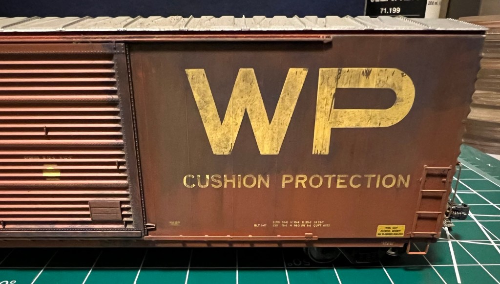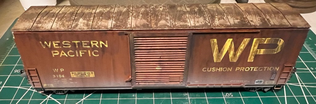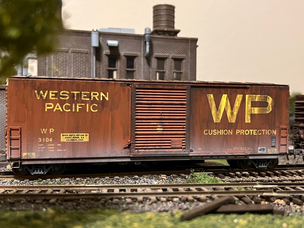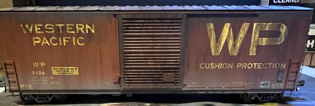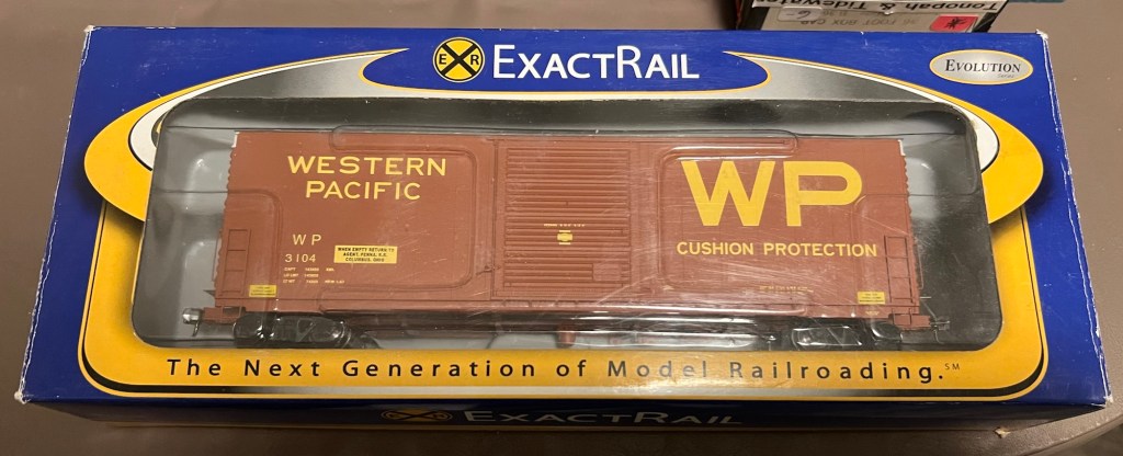 A recent car for my fleet was completed over the holiday break, this one an ExactRail 50’ PC&F single door boxcar lettered for Western Pacific. Shown below is the car new in box purchased off eBay: