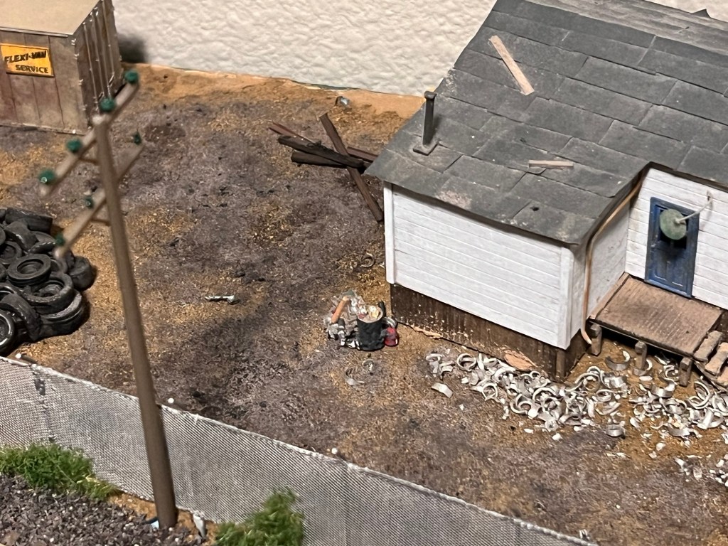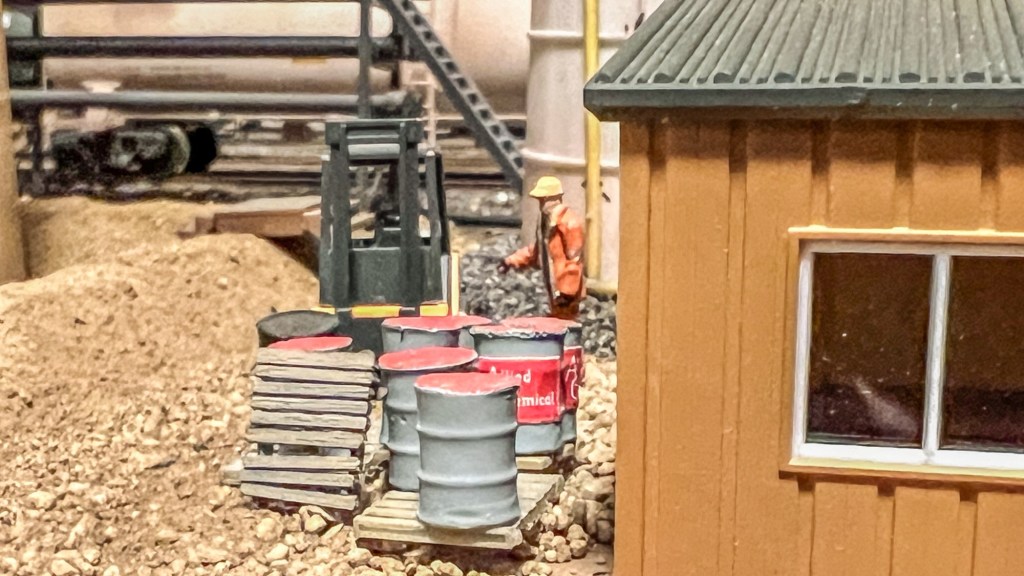 Again today I’m posting more details I’ve added to the modules since I last posted about these. Eventually as mentioned before, my goal is to make these modules look like a gritty, grimy industrial area you’d find on Penn Central in the seventies. Details definitely make a layout, as much as weathering and scenery. I hope to one day add a photo backdrop of some sort of industrial city area which would really make the modules pop. Photos below of a lot of detail work: