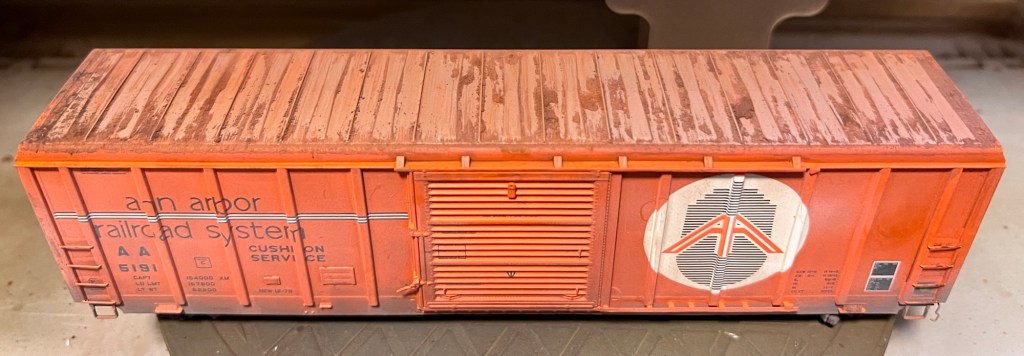 I decided to keep this car as an Ann Arbor car, but just fade it and weather it a bit. Not every car I do is a rust bucket or needs to be!! The car is thoroughly weathered including the underside with my “texture weathering”.