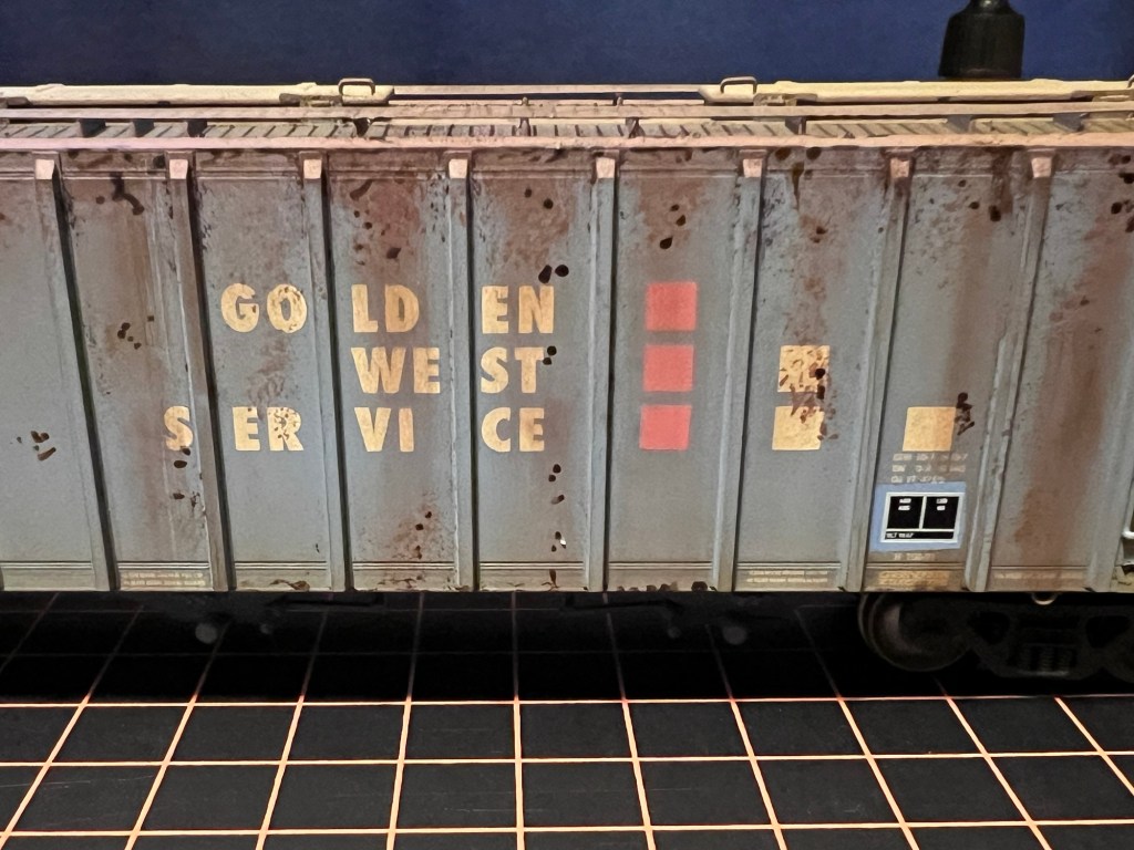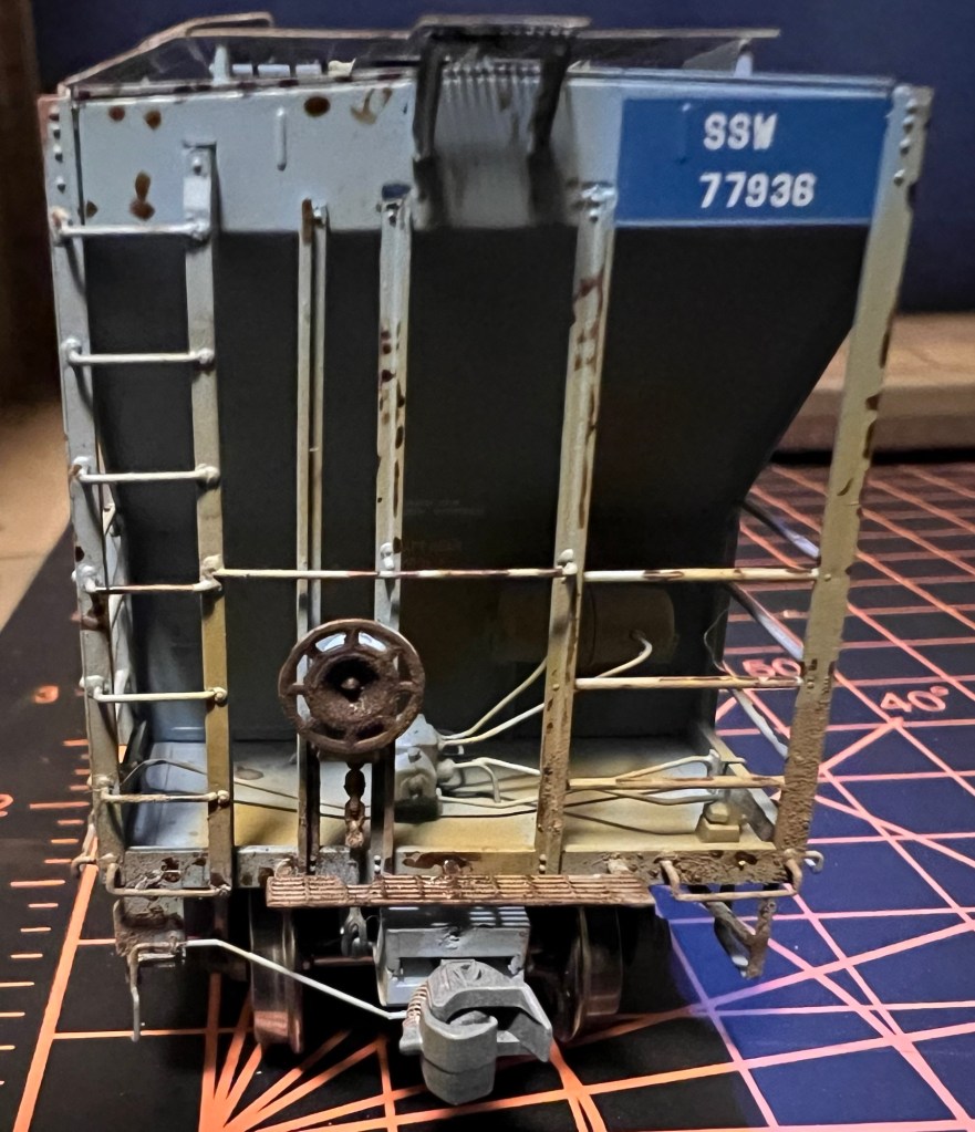 Next car for my local friend and client is this hopper patched for SSW. I started on this one by matching the paint a bit lighter then fading the car.