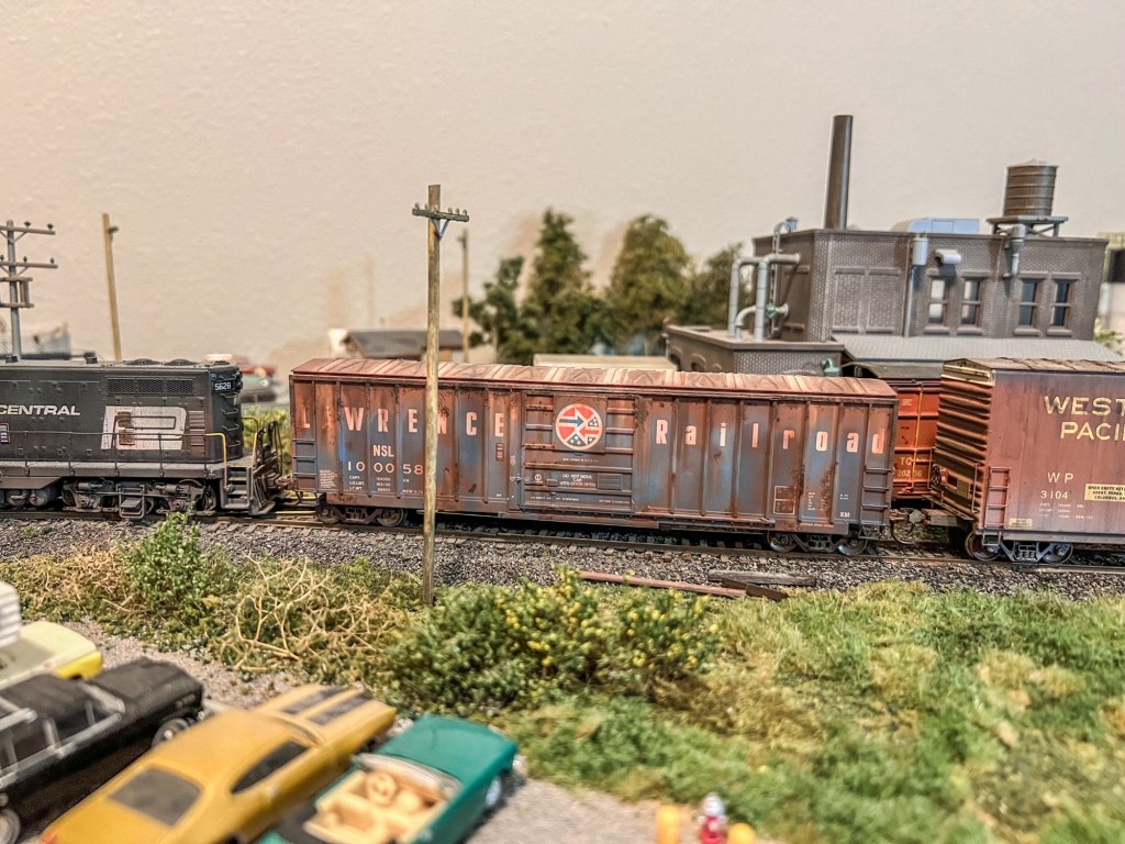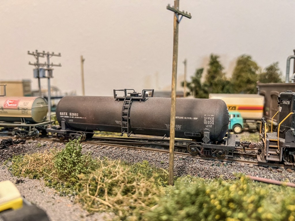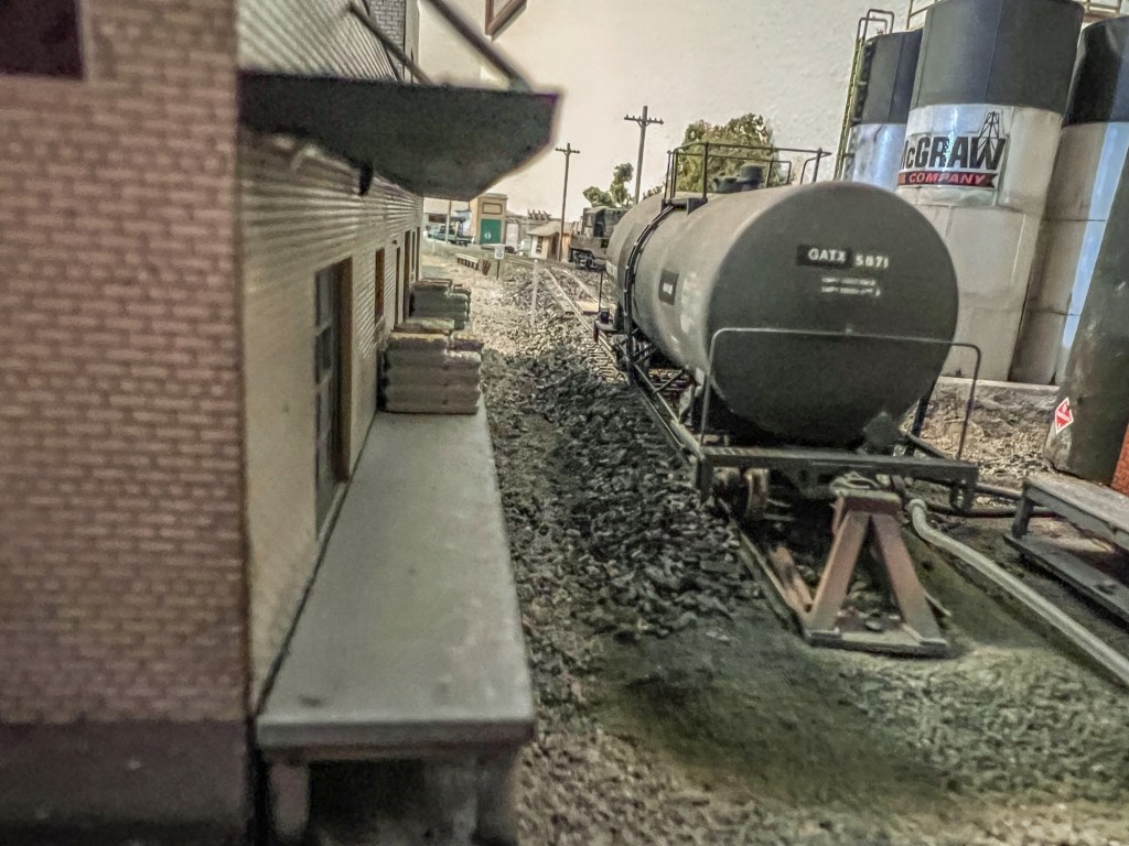 GP7 5628 switching out a 50’ PC boxcarShoving down the team trackSwitching out empties from Armitage Furniture & team trackEmpty ex-St. Lawrence boxcar Tank car of gasoline sits at McGraw oil and gas dealerSwitching out the chemical plantUPFE reefer sits at Stephen’s Grocery distributor All door boxcar headed for Armitage Furniture