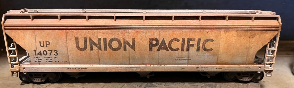 Here’s a quick side project I started on to weather up this forgotten piece of rolling stock soon to go on eBay. This is an older Accurail car I’ve had for some time with very limited weathering. I decided to enhance the weathering by doing the car ends, underside, and adding rust and dirt to the roof and car sides. Below is a photo of the car side as it looked before I started, with the other photo of the other side after weathering today. I need to also do the trucks and wheels plus add lube stencils. More coming when this guy is finished!