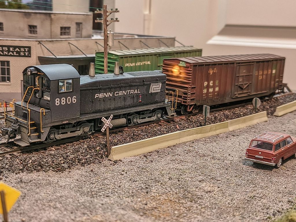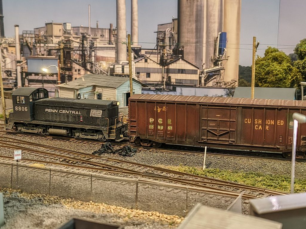 I found stored away in an old train box a car I had forgotten about, this Accurail 50′ ft ex-PRR boxcar patched for PC and weathered. It now rejoins the fleet and was spotted today on the team track: