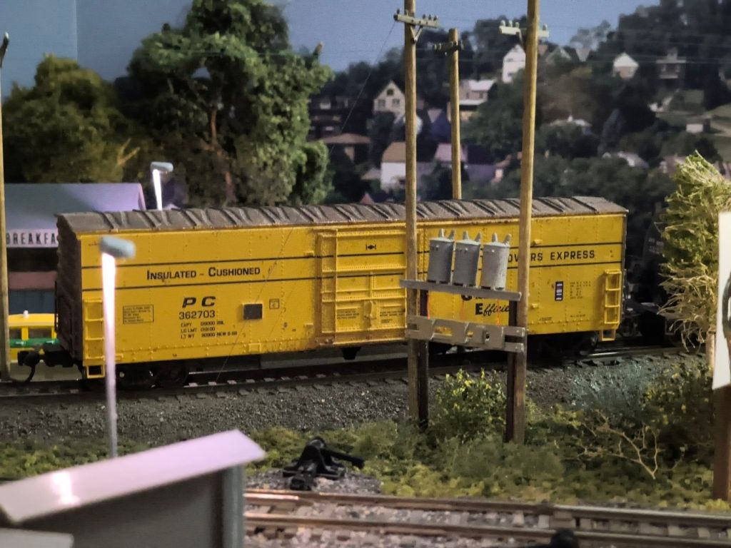 Last but not least in this part, we’re going to head down to Stephen’s to pick up that PC reefer and caboose, but first we’re going to move that N&W reefer over to Stephen’s loading dock: